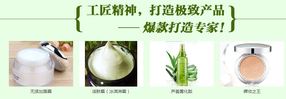 护肤系列:抗皱护肤品加工、水光针加工、沙棘原液加工、芦荟原液加工、定妆水加工、芦荟雾化胶加工、爽肤水加工、青春定格液代加工、懒人面霜加工